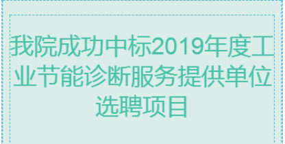 2019年8月29日,在工信部節(jié)能與綜合利用司組織的《2019年度工業(yè)節(jié)能診斷服務(wù)提供單位選聘項(xiàng)目》招標(biāo)中,經(jīng)評(píng)標(biāo)委員會(huì)認(rèn)真評(píng)定,我院以良好的信譽(yù)、豐富的業(yè)績(jī)經(jīng)驗(yàn)、優(yōu)秀的投標(biāo)方案贏得肯定,順利中標(biāo)。